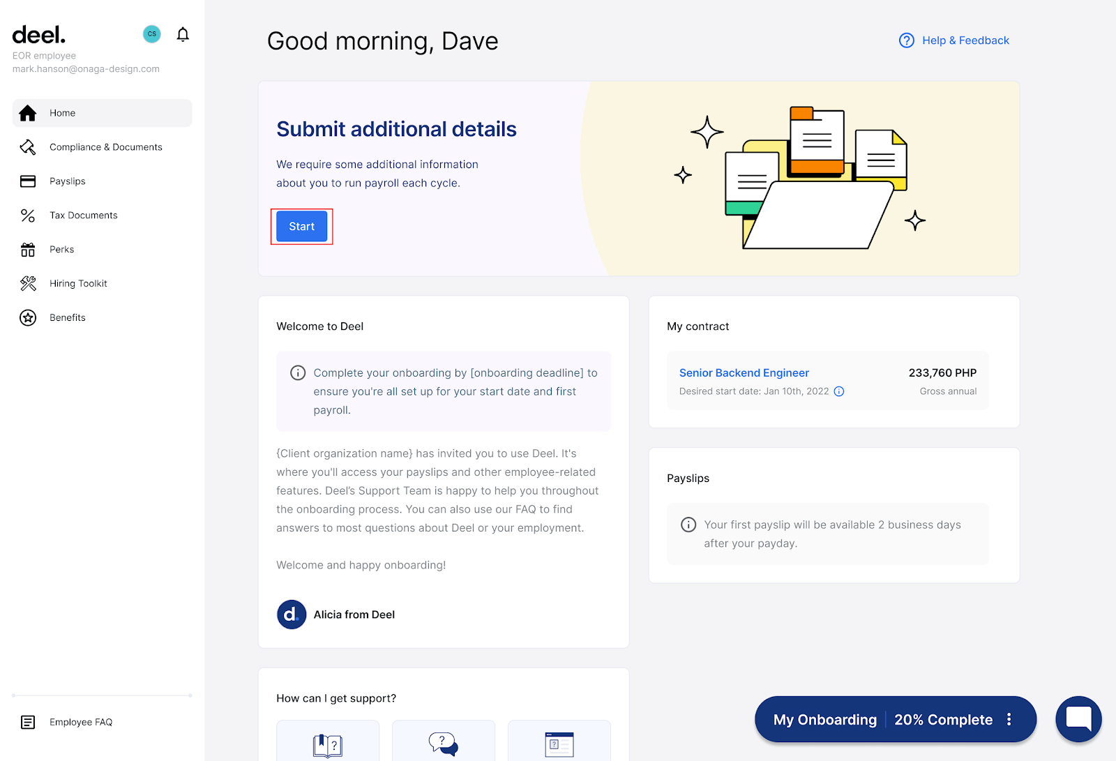 Paperless onboarding process: Deel facilitates a paperless onboarding process by allowing new hires to complete onboarding documents electronically. This eliminates the need for physical paperwork and enables a more efficient and eco-friendly onboarding experience.