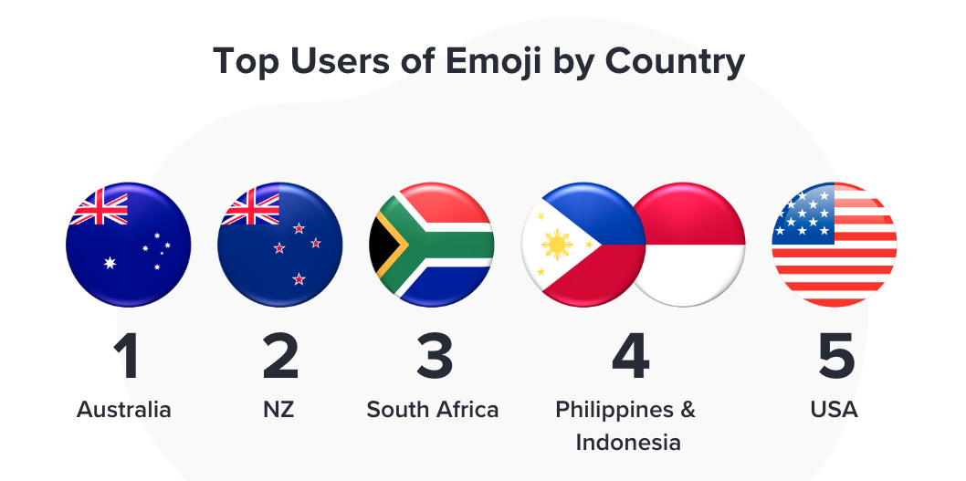 When it comes to the biggest daily users of emojis, South Africa leads with Australia and New Zealand following closely behind, with the Philippines and the USA bringing up the rear.