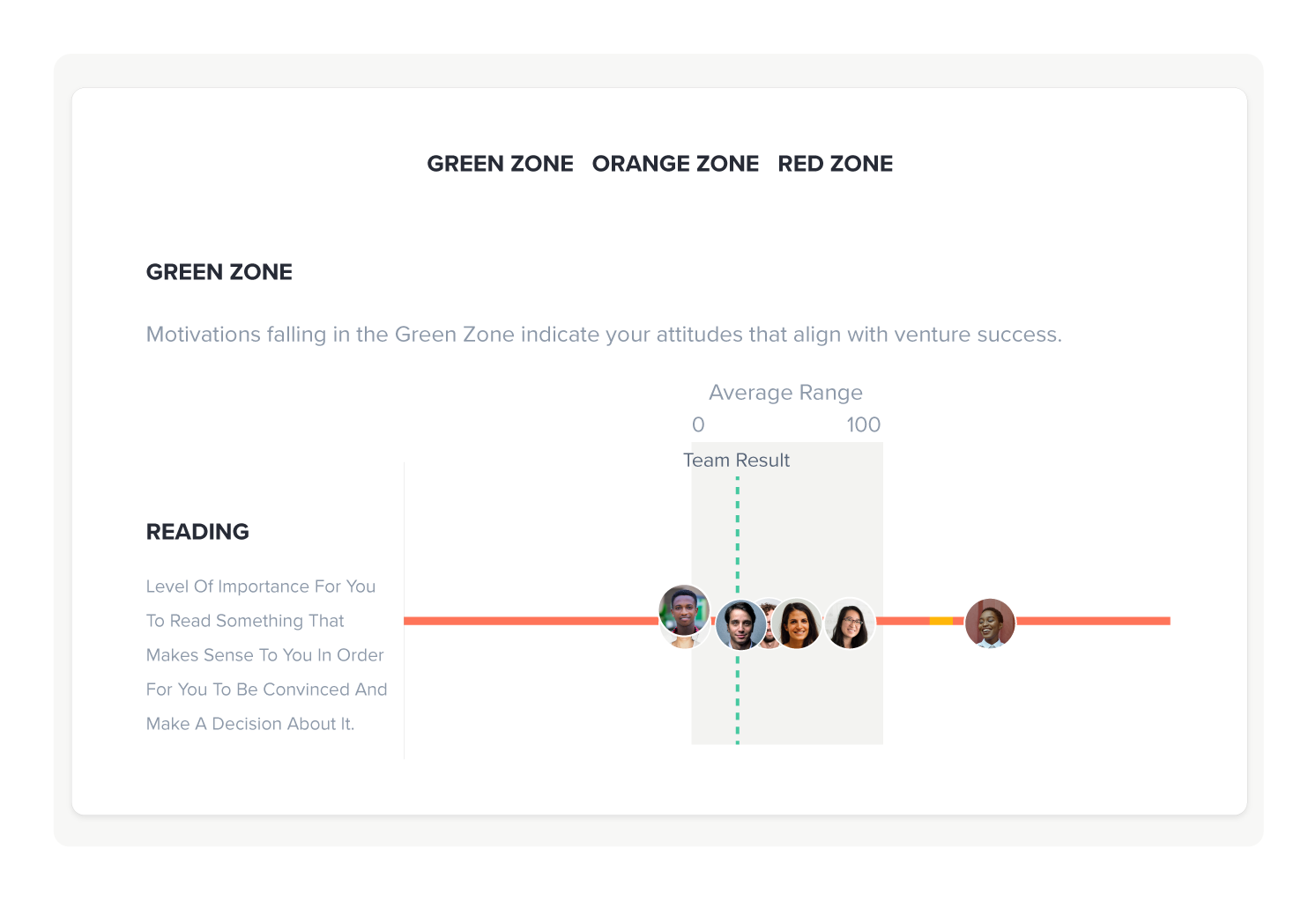 Having existing team members take the free F4S assessment (it takes just 15-20 minutes) measures 48 different traits that influence energy levels and motivation for certain tasks. Then, using the F4S Benchmarking Tool, you can pinpoint your team’s success gaps and blindspots and compare them against industry standards. This allows you to quickly identify candidates that will complement the team and improve performance. Pretty powerful stuff.