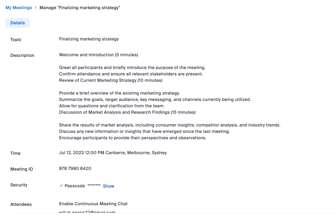 - Get the meeting details: