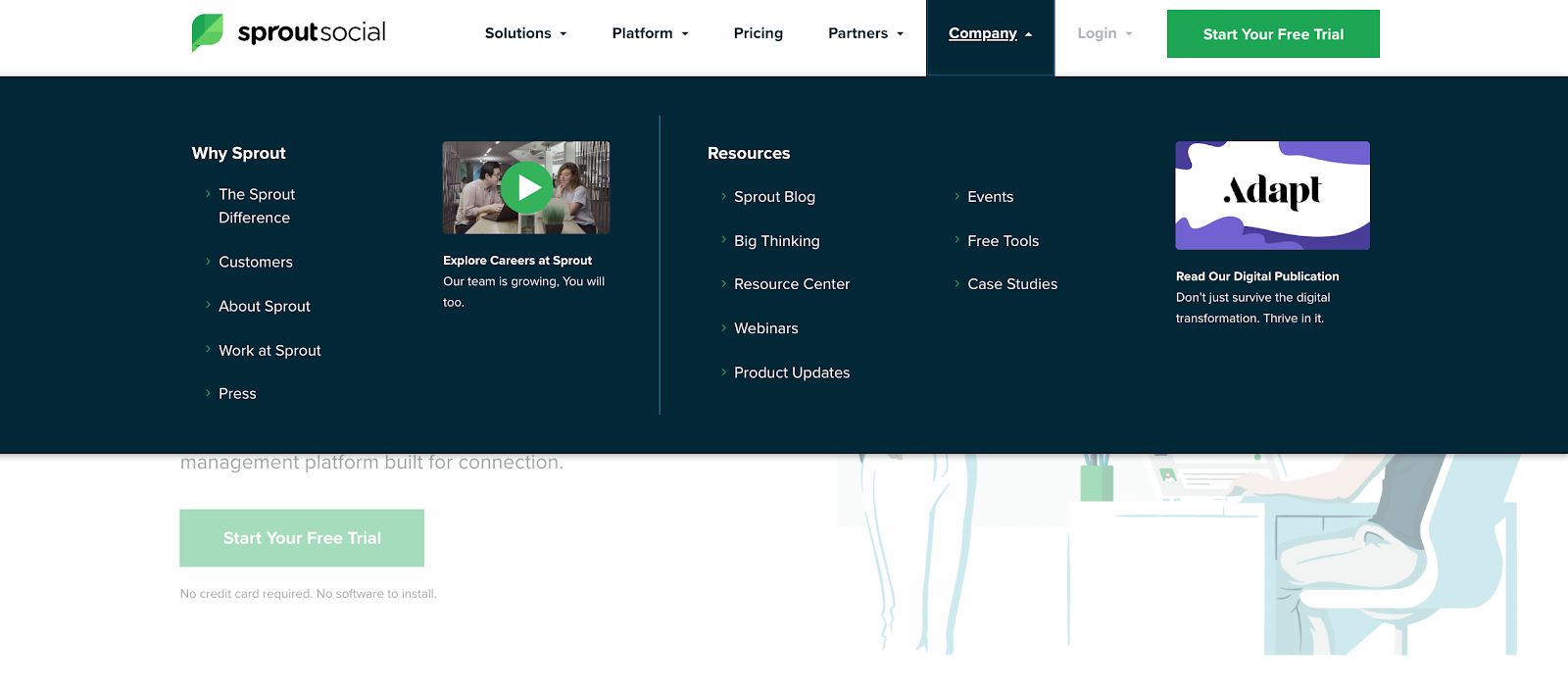 You’ll note they’ve a Company section. It gives you a good opportunity to explore the company, their values, and even their employees. In their About Sprout section, you can also find info about their team.