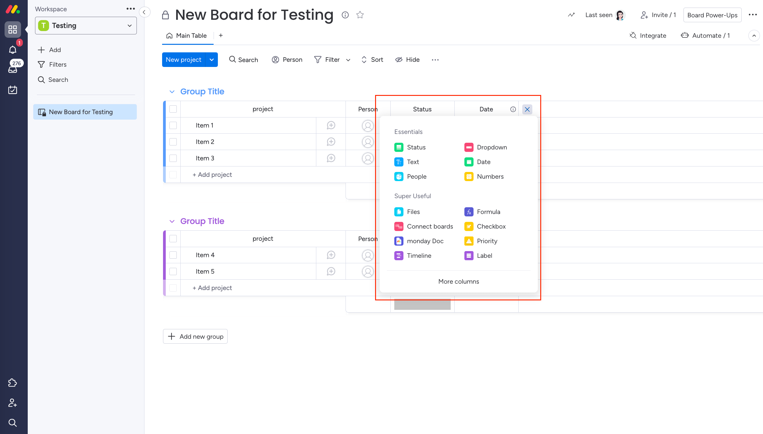 Click the "Add Column" button to create new board columns for each project stage. You can also customize the column by adding labels, dropdown menus, and other custom field types to capture the data you need for each task. For example, add a label for task priority or a dropdown menu to assign tasks to team members.