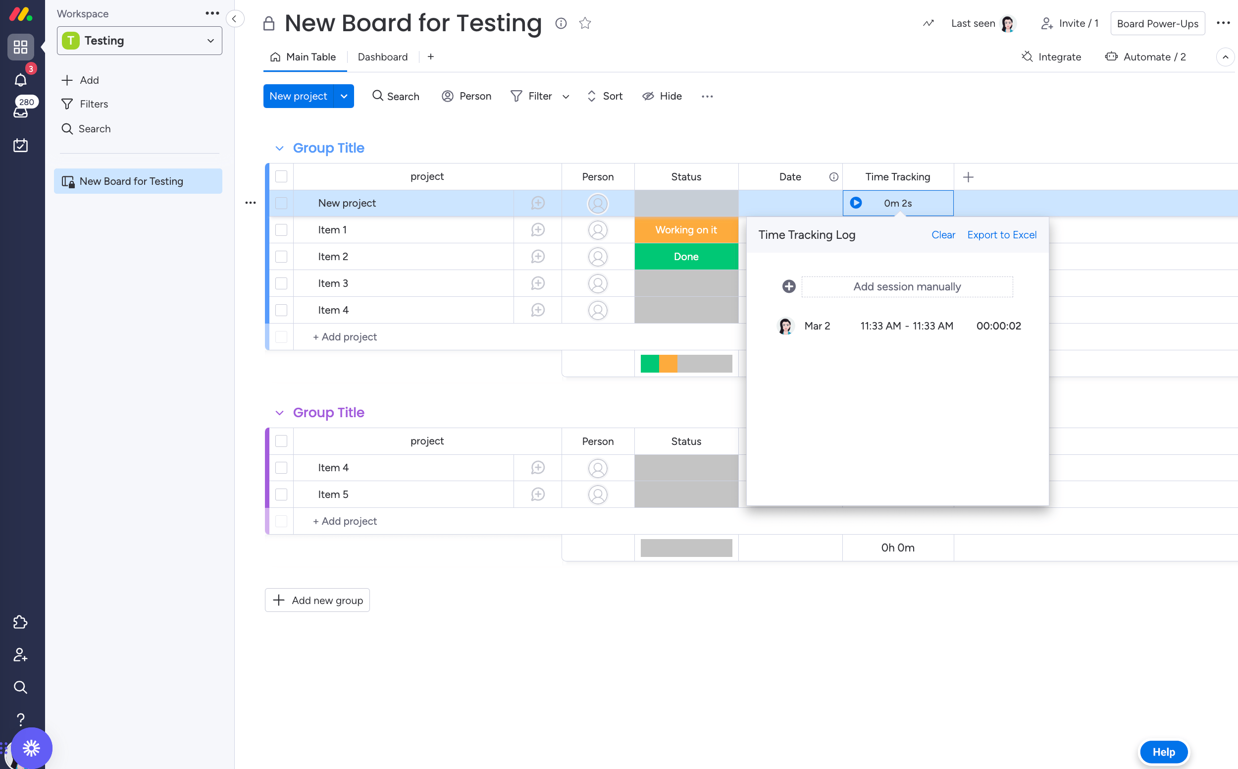 Alternatively, you can use a third-party time-tracking integration that syncs with Monday.com. Some include Toggl, Harvest, and Everhour. To use a third-party time tracking integration, you have to connect your Monday.com account to the integration and follow the instructions provided by the integration. Once set up, you can view reports in the integration's dashboard.