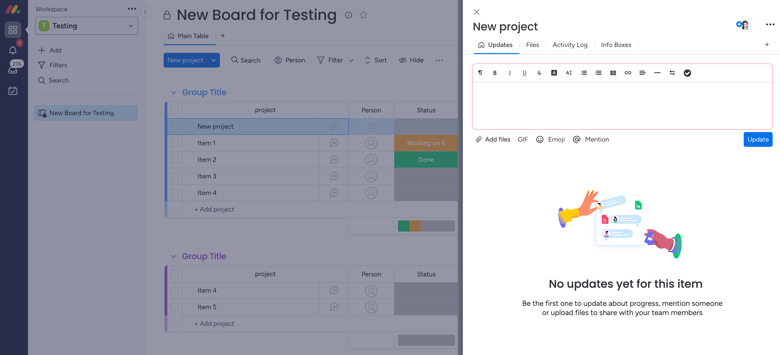 Monday.com has built-in collaboration tools that allow you to communicate with your team members directly within your board. Use the comments section to discuss tasks, tag team members, and share attachments.