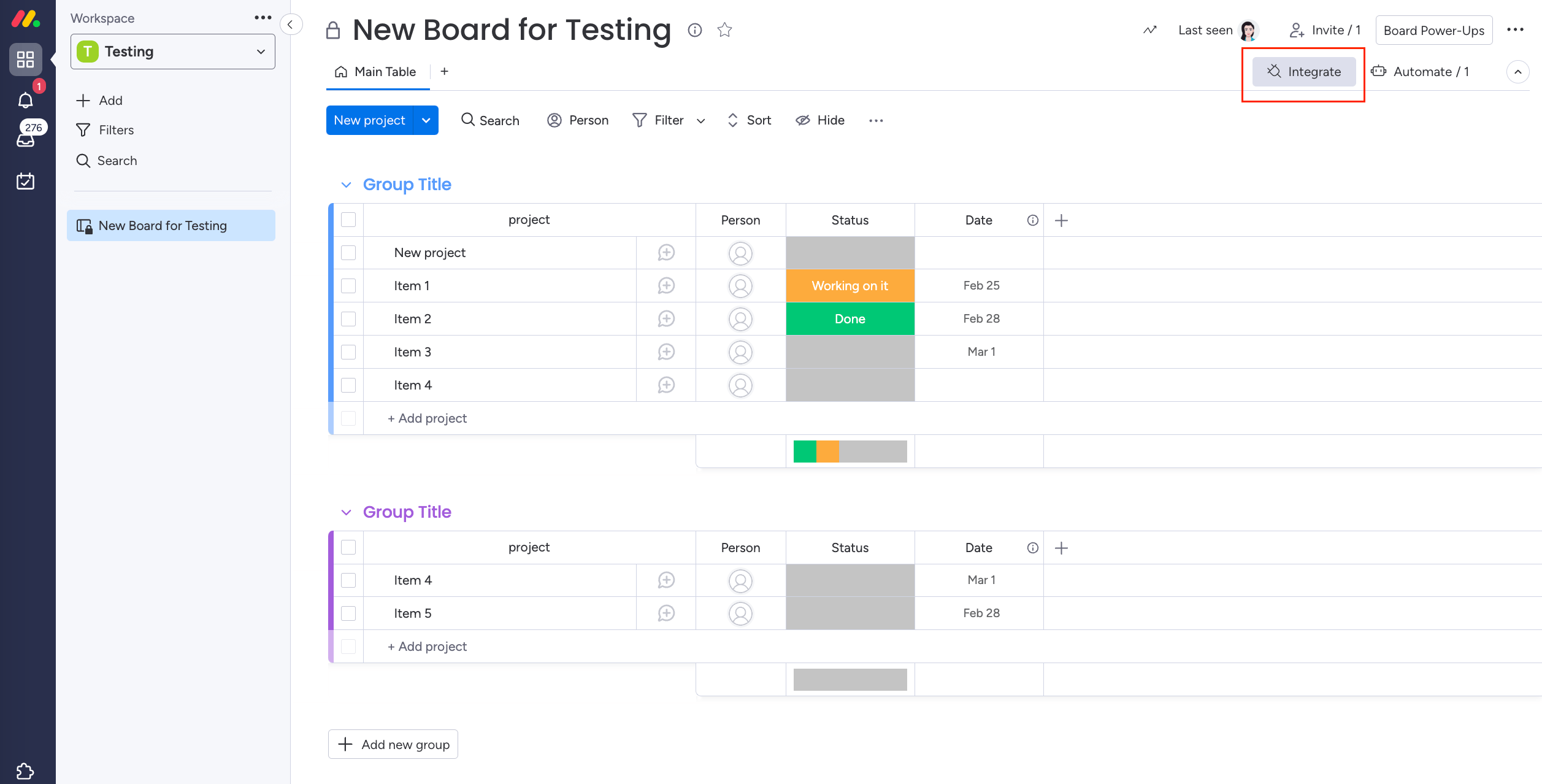 Use the "Items" feature to add a list of projects, daily tasks, clients, or relevant workflow details to your board. For example, add tasks to your board, click the "+" button in the relevant board, and enter the task details, such as the task name, description, due date, and any relevant attachments.