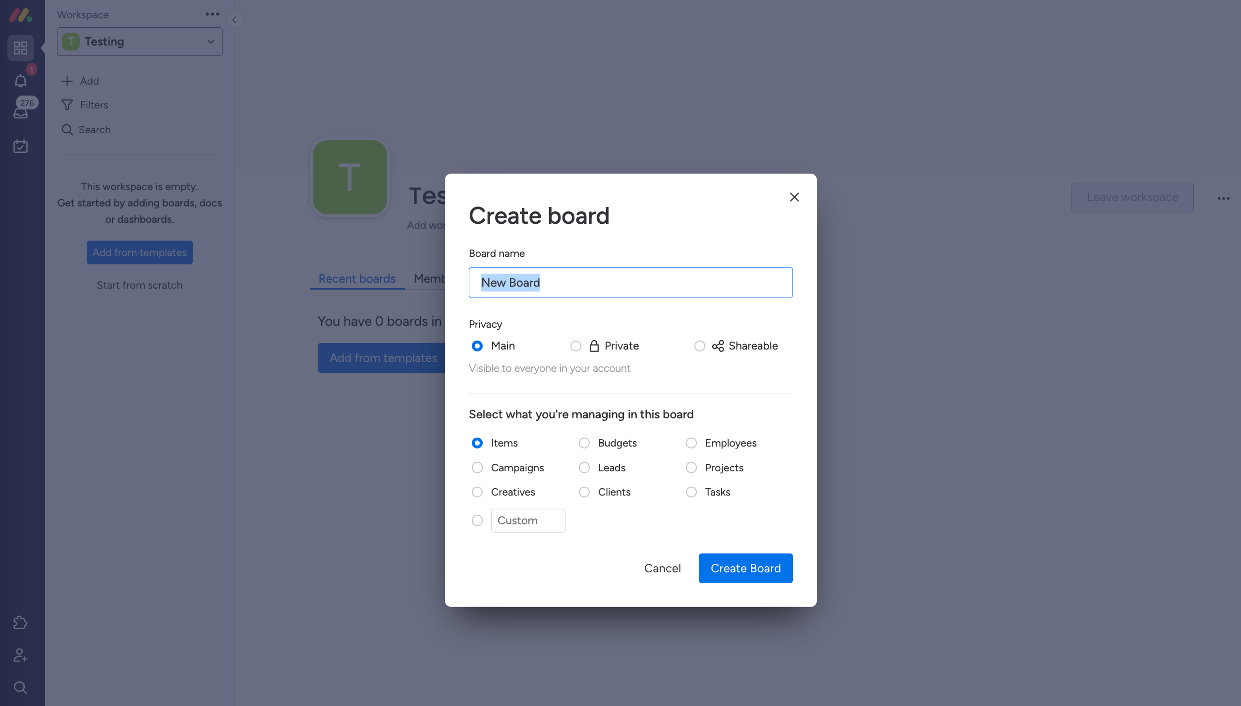 To create one, log into your Monday.com account and create a new board. Choose the "Board" option and give it a name that reflects your project.