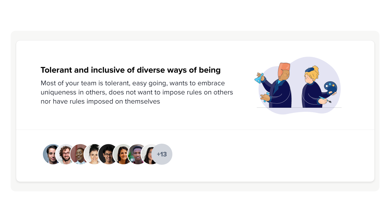 The team Affinities report shows you what drives each person to do their best work. You learn about their work style preferences. If you’re looking for common ground for team members, you’ll find it here.