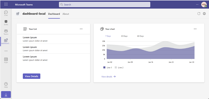 - Microsoft Teams, Build a dashboard tab app, https://learn.microsoft.com/en-us/microsoftteams/platform/tabs/how-to/build-a-dashboard-tab-app